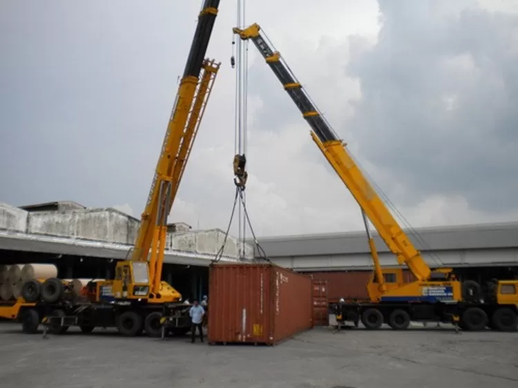 Cần cẩu cũng được sử dụng để nâng hạ container, đặc biệt là trong các cảng biển. Cần cẩu có khả năng nâng hạ container nặng và xếp chồng container lên cao.