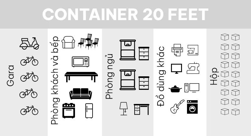 Để dễ hình dung Nam Á Container sẽ lấy ví dụ về đồ dùng của một hộ gia đình với căn hộ khoảng 80m2 với 2 phòng ngủ.