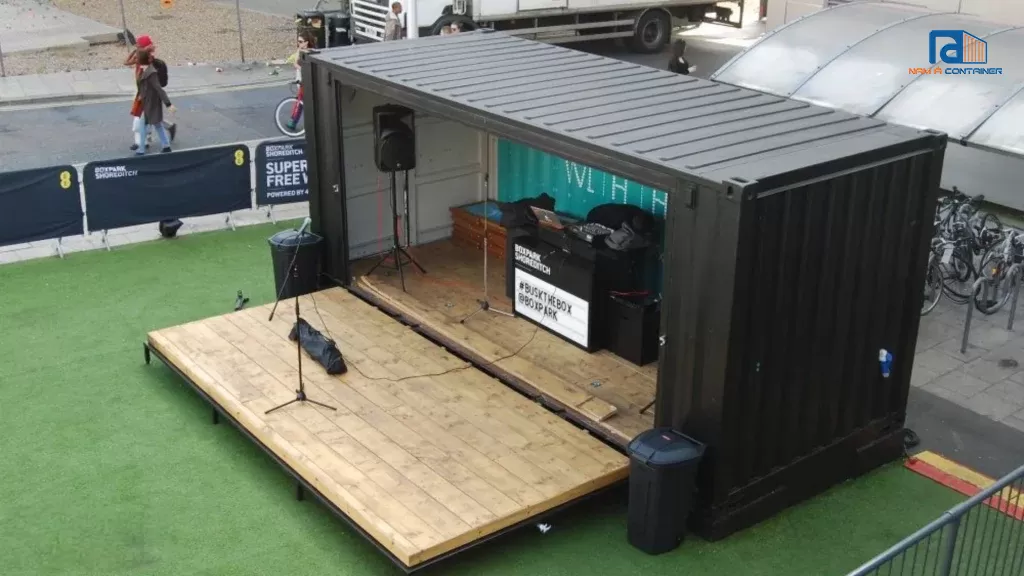 Container có thể được sử dụng để xây dựng các sân khấu di động, dễ dàng thiết lập tại các địa điểm khác nhau. Các sân khấu này cung cấp không gian biểu diễn linh hoạt cho các sự kiện âm nhạc.